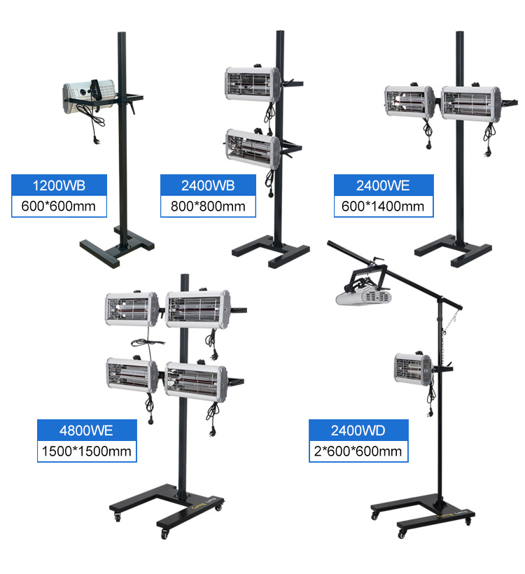 Noble Refinish mobile infrared dryers have some models for you to choose. The designs of the cassette, the arm, the stand and the foot are practical and smart with the efforts of every design team member. Also, temperature measurement technology is also optional for Nobel Refinish infrared products. All Noble Refinish mobile infrared dryers can be used for quick drying of putty, filler, base and clear coat.These Infrared Paint Curing Lamps are highly effective for running a service site for car body shops.